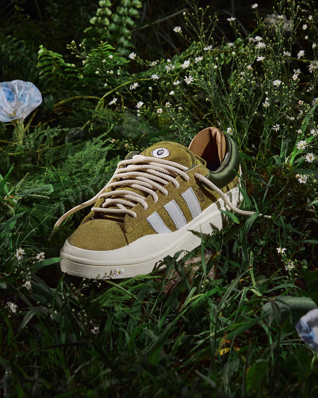 Contoured outsoles. Bold 3-Stripes. And casual style for days. These adidas shoes uphold everything you love about classic Campus footwear, but this time with the unmistakable look of a Bad Bunny collaboration. A velvety suede upper takes on a soft, fuzzy feel offset by tonal details and a double-tongue design. The vibe rides on a chunky rubber outsole that rounds out the signature silhouette.